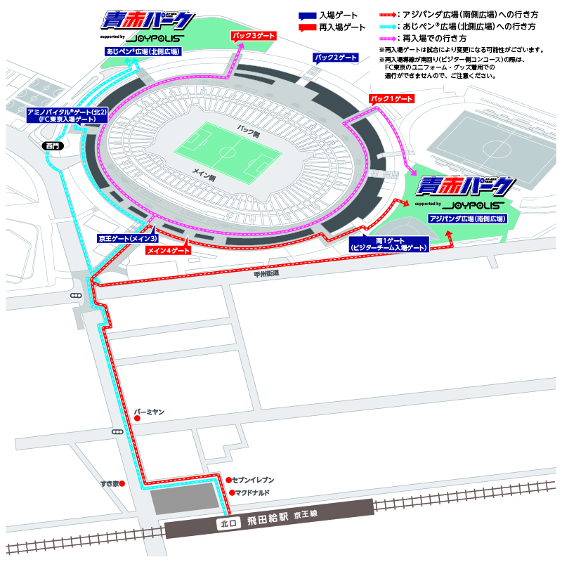 ※O AO-AKA PARK supported by JOYPOLIS e o campo de prática de arremesso podem ser usados antes da entrada (antes da abertura dos portões). Após a entrada, também é possível utilizá-los pelo portão de reentrada.