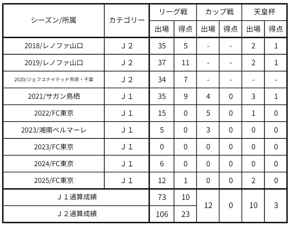 O tempo que passei no FC Tokyo foi tão intenso que é difícil expressar em palavras, e teve um grande significado para a minha vida. Especialmente o período em que não pude estar em campo devido a lesões me proporcionou muito tempo para refletir sobre mim mesmo, o que me deu a oportunidade de me fortalecer tanto como jogador de futebol quanto como pessoa. Sou imensamente grato aos treinadores e médicos que me apoiaram na recuperação, aos companheiros de equipe que continuaram me apoiando e aos fãs e torcedores que nunca deixaram de me incentivar.