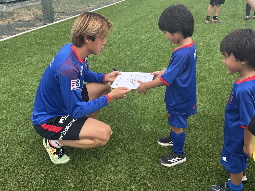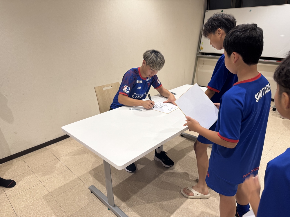 Foi muito impressionante ver os alunos da escola olhando com olhos brilhantes para o jogador Yuta ARAI, que estava assinando autógrafos♪