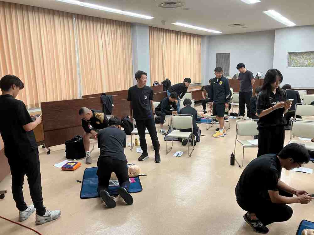 安心・安全なスクールを目指し、突然のことにも対応できるようにコーチ全員が真剣に取り組みました。