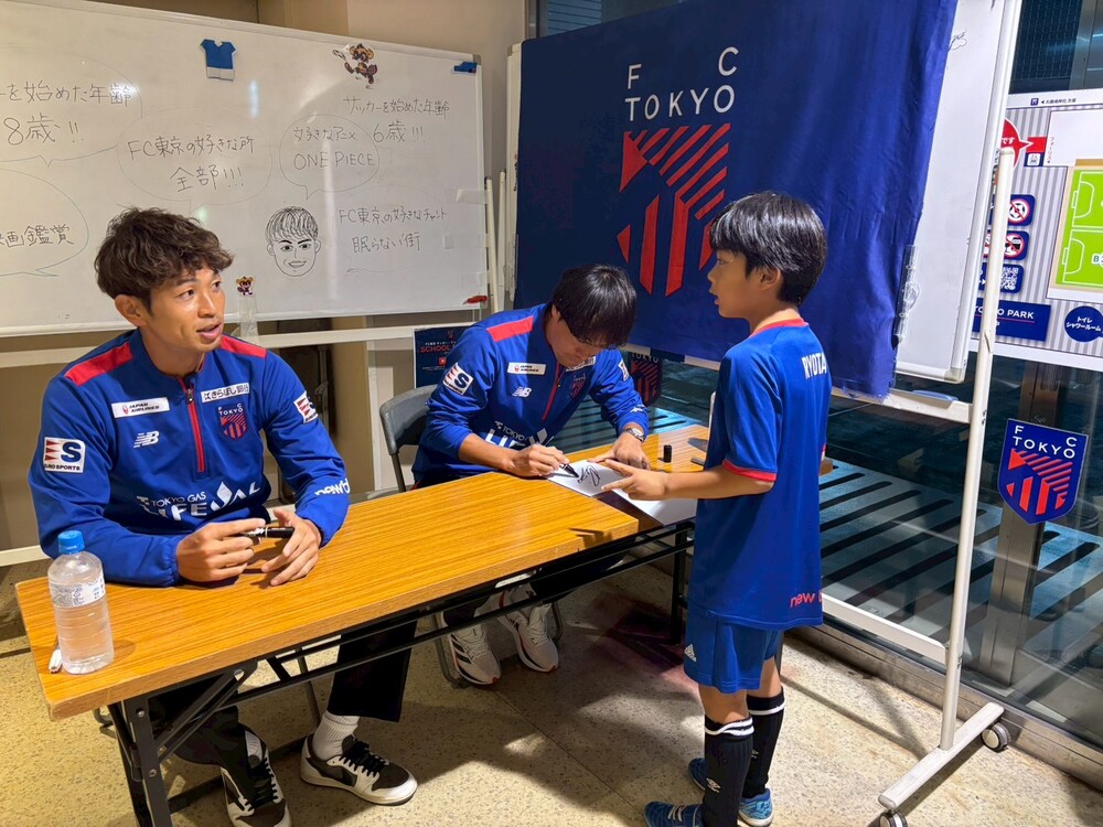 その後は、スクール生が持参したFC東京のグッズや色紙に丁寧にサインを書き、