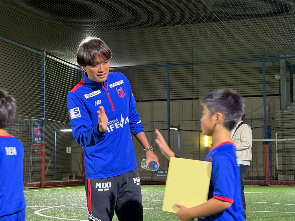 森重選手は、「マークする相手が、ボールとマークが同時にみえないところに動いて、一気にスピードを変えてみて」というアドバイスを送りました。
