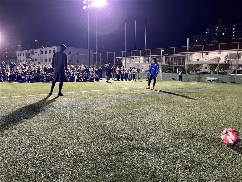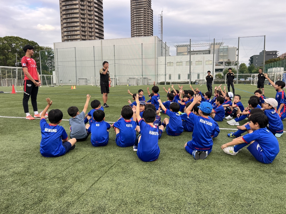 正確なコントロールや、鋭いドリブルからの強烈なシュートを見せ、スクール生は本物のプレーを目の前に拍手喝采でした!