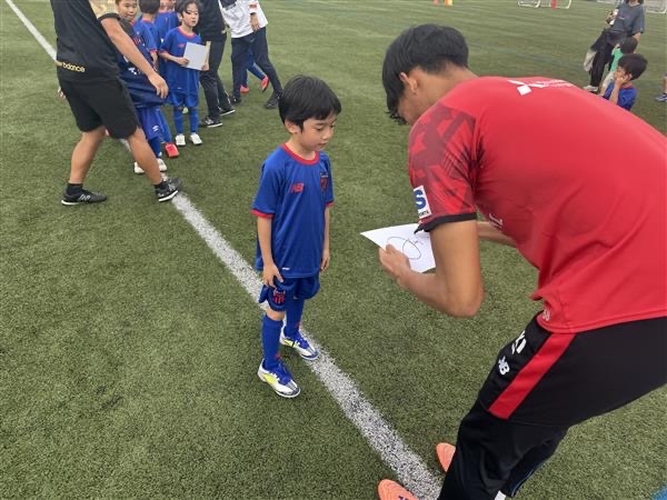 質問タイム後は、スクール生一人一人ににサインを書き、「全力でプレーすることと、家族への感謝の気持ちを持って、プレーして下さい」と伝えていました!