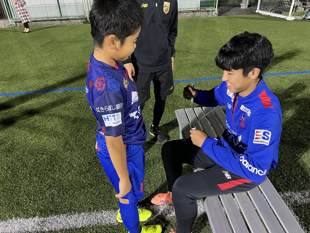 その後は一人一人にサインを書き、「サッカーを思いっきり楽しんで全力でプレーして下さい」と、