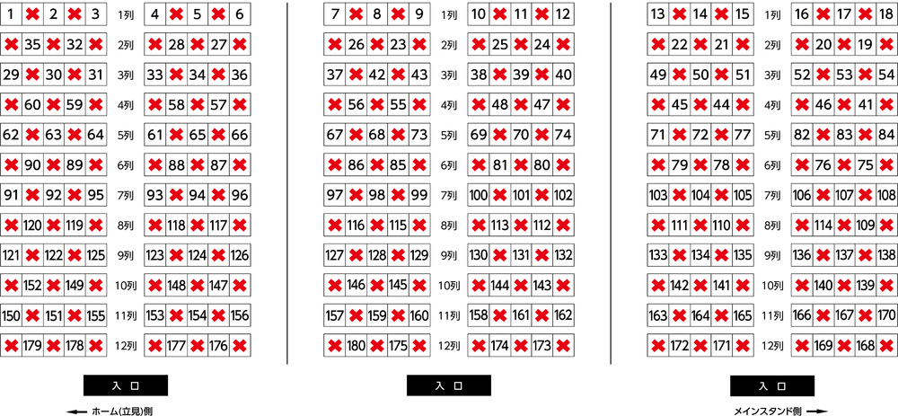 关于主场座位,正如事先通知的那样,请在您购买的整理券号码对应的位置观赛。