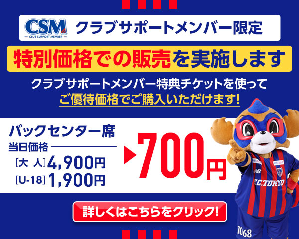 为了“感染者发生时的接触者确认及通知”,仅通过FC东京(J联赛票务)销售门票。请注意,便利店及当日体育场的当日票售票处不销售门票。