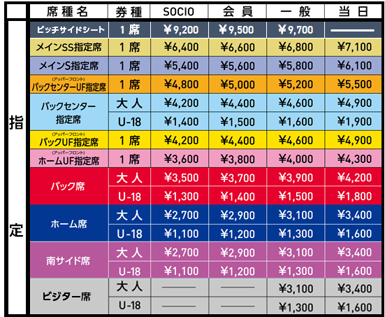 【关于座位间隔】J联赛新冠病毒感染症应对指南中记载为“前后左右间隔约1个座位”,但针对10月10日(周日)名古屋Grampus比赛,将左右及前后间隔3个座位开始销售。
