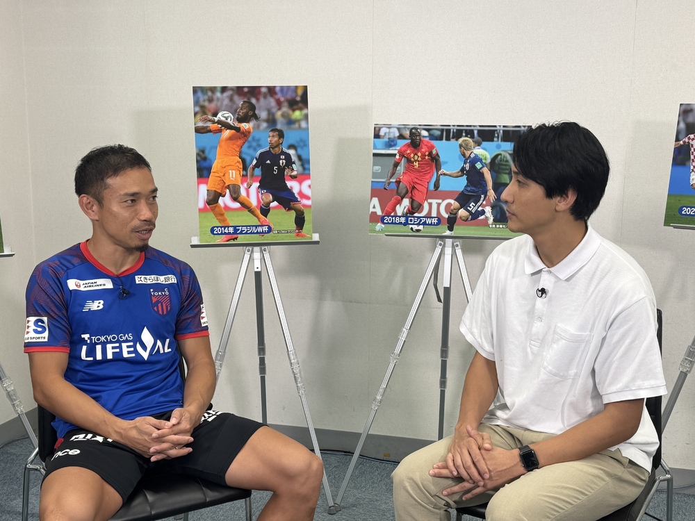 ※点击图片即可观看长友佑都选手与山本紘之播音员的对话视频(链接至官方YouTube频道)。