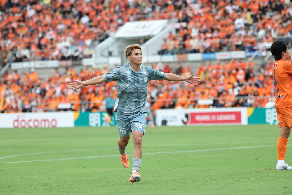 從森重選手的長傳球中突破至中路的俵積田選手,巧妙地停球後傳向右側,接球的佐藤恵允選手經過一個假動作後帶球向右,右腳一擊。以穩健的腳感射出強烈的射門,豪邁地射穿近門柱,東京將比賽拉回平手。
