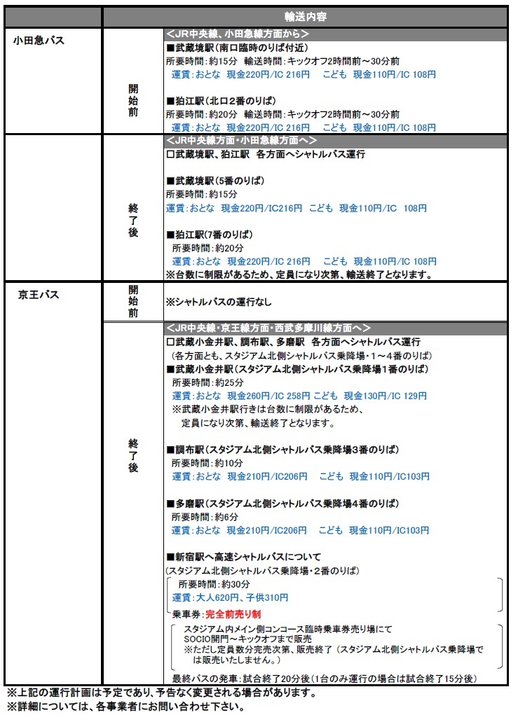 7/7(周日)2019明治安田生命J1聯賽第18節對Gamba大阪(19:00開球/味之素體育館)將運行的接駁巴士及路線巴士相關資訊。