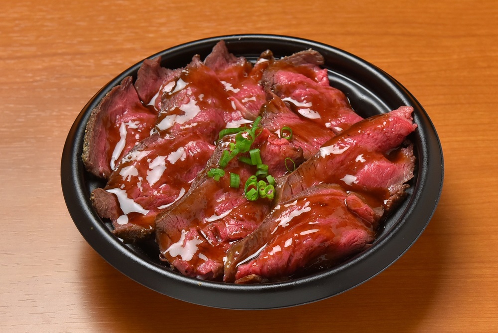 肉類專門店製作的「烤牛肉丼」。本店最受歡迎的美食。柔嫩且風味濃郁的烤牛肉搭配蒜味醬油醬,提升美味層次。