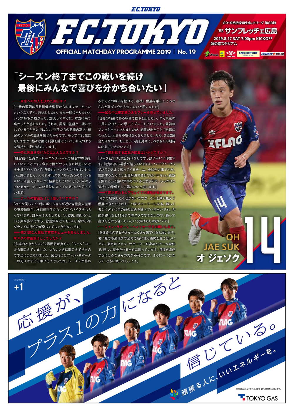 8/17(周六)2019明治安田生命J1聯賽 第23節 vs Sanfrecce廣島(19:00開球/味之素體育館)的官方比賽日程節目,現公告如下。