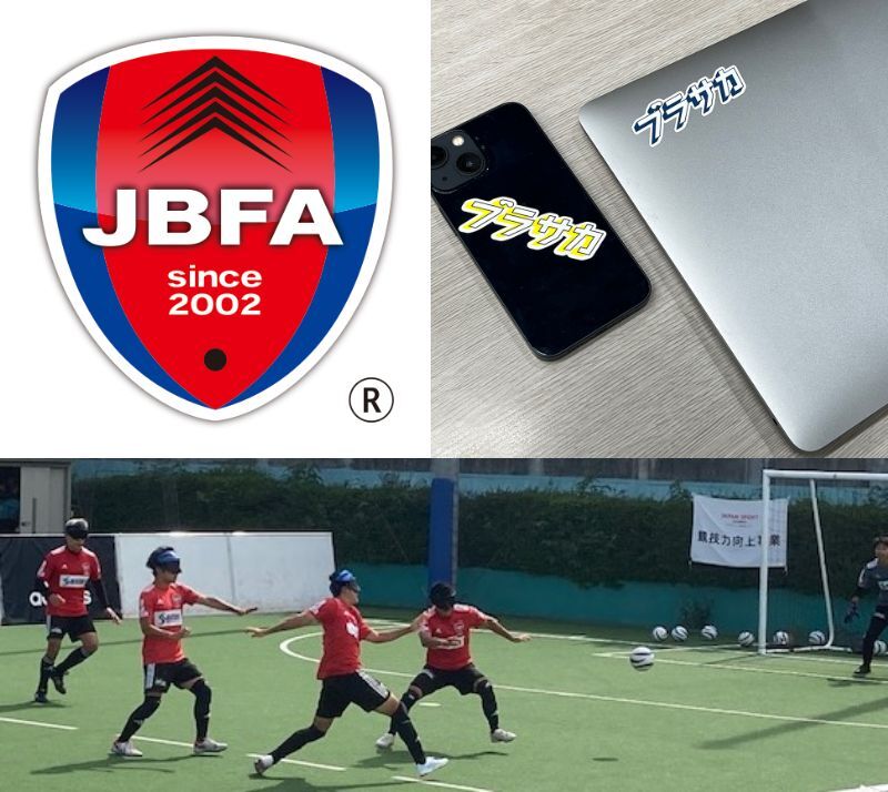在看不見的世界中磨練感官,挑戰超級表現吧!販售手掌大小的布拉薩卡標誌貼紙及協會官方吉祥物「布拉比」商品。曾在小平市內反覆練習的男子日本代表隊已確定參加巴黎帕運,請多多支持!