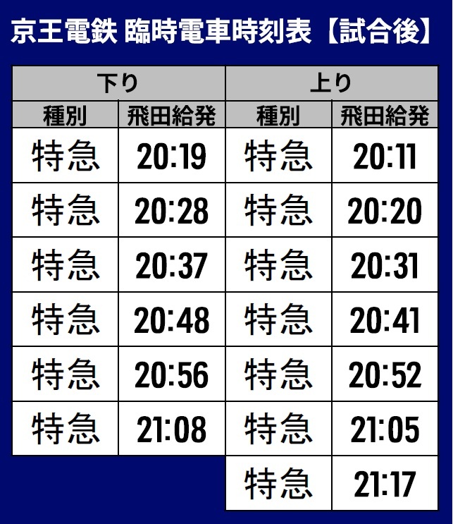 上行…飛田給發20:11~21:17的特急/共7班