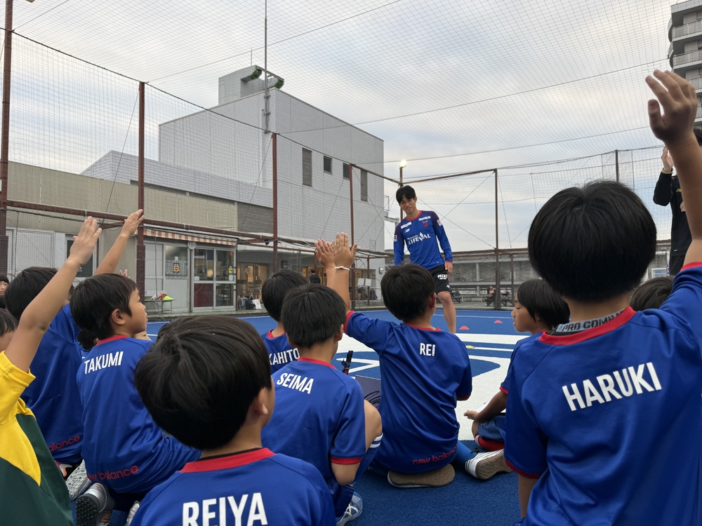 從幼兒班到小學六年級的學員們聚集在一起,面對憧憬的頂級球隊選手,眼睛閃閃發亮。