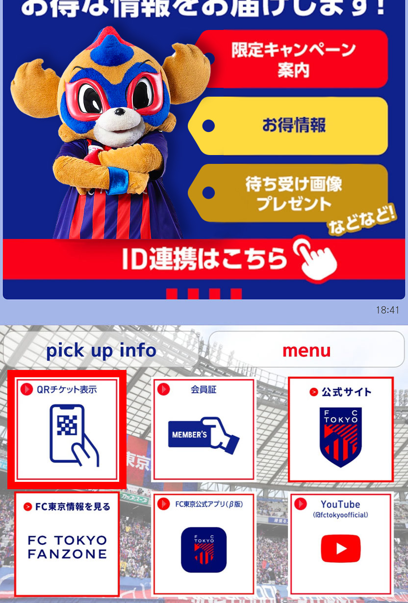 LINEを開きリッチメニューの「QRチケット表示」をクリック※リッチメニューはタイミングによって異なります
