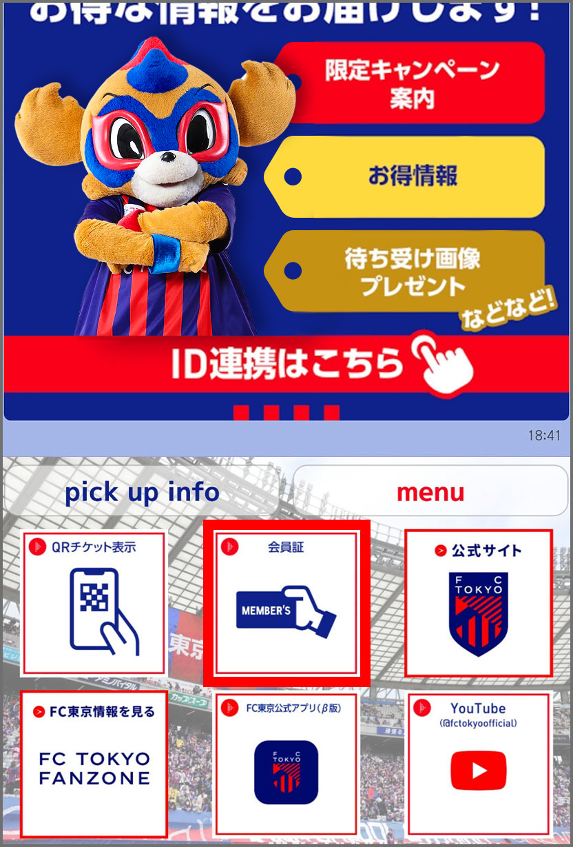 リッチメニューの「会員証」をクリック※リッチメニューはタイミングによって異なります