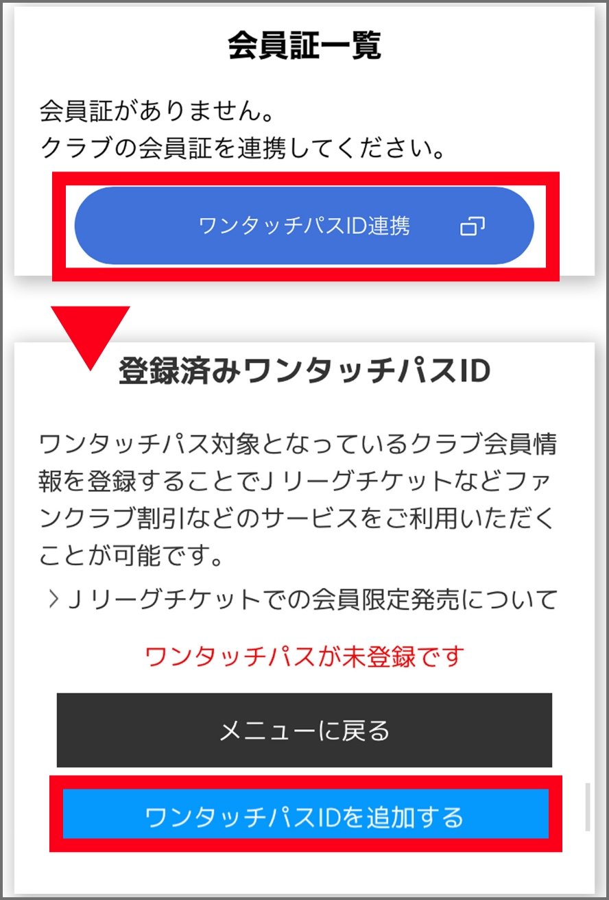 「ワンタッチパスID連携」ボタンをクリック次の画面でワンタッチパスIDを追加するボタンをクリック