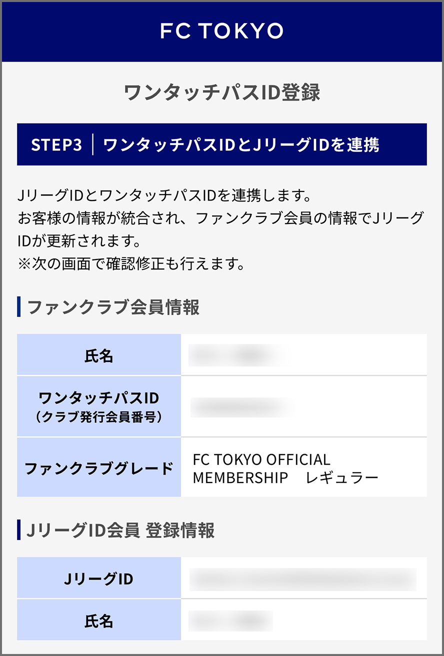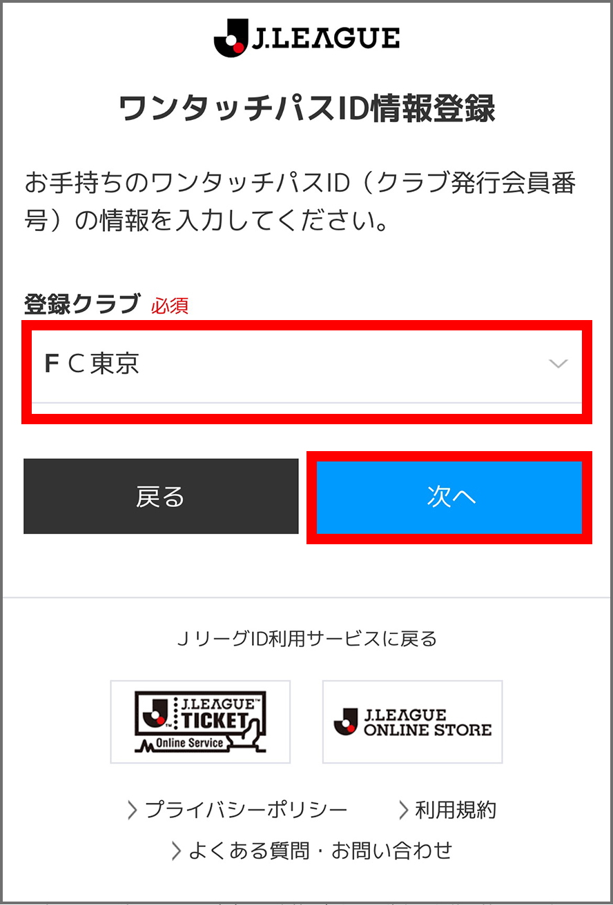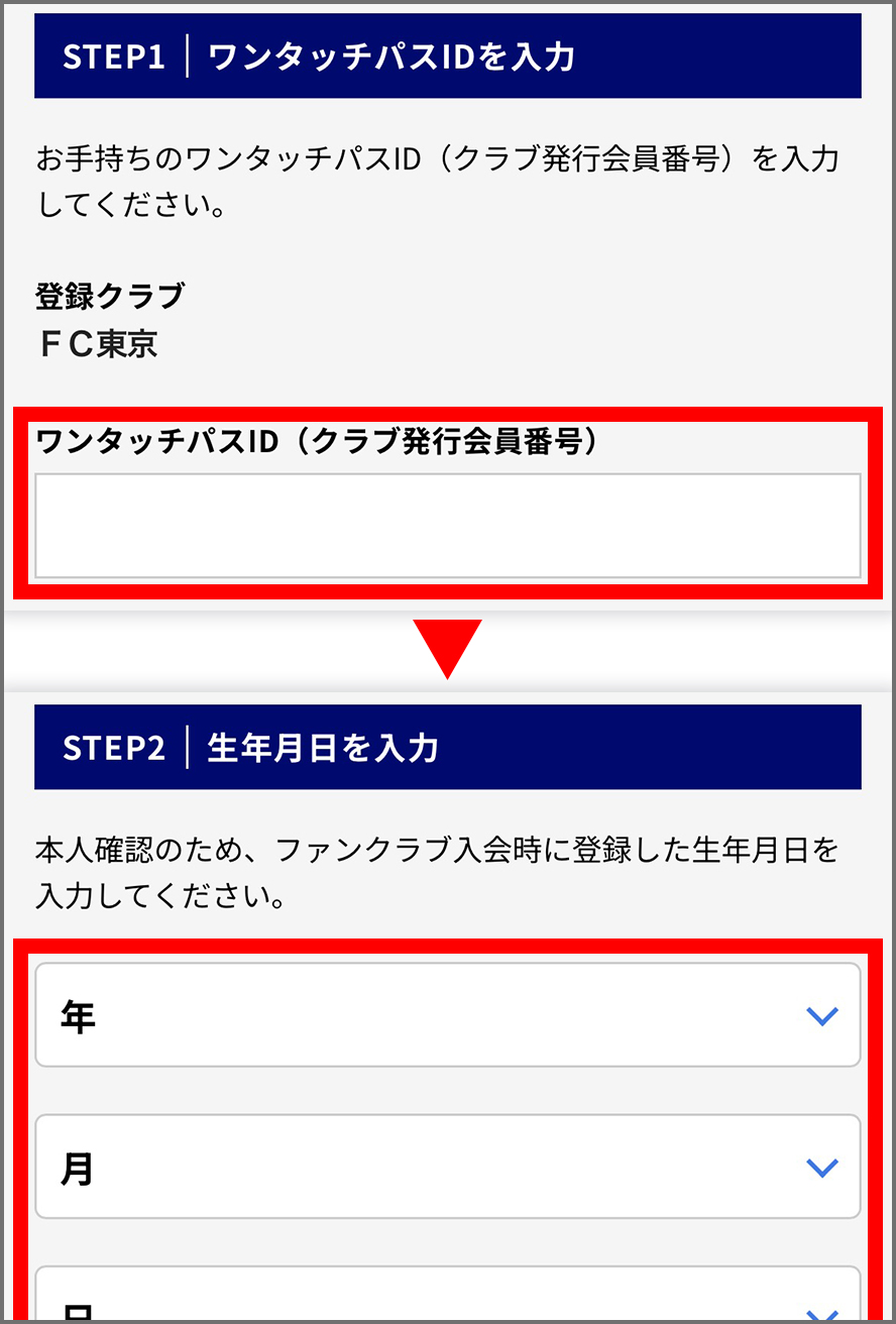 ワンタッチパスIDを入力しSTEP2へ次の画面でSOCIOまたはオフィシャルメンバーシップで登録している生年月日を入れSTEP3へ