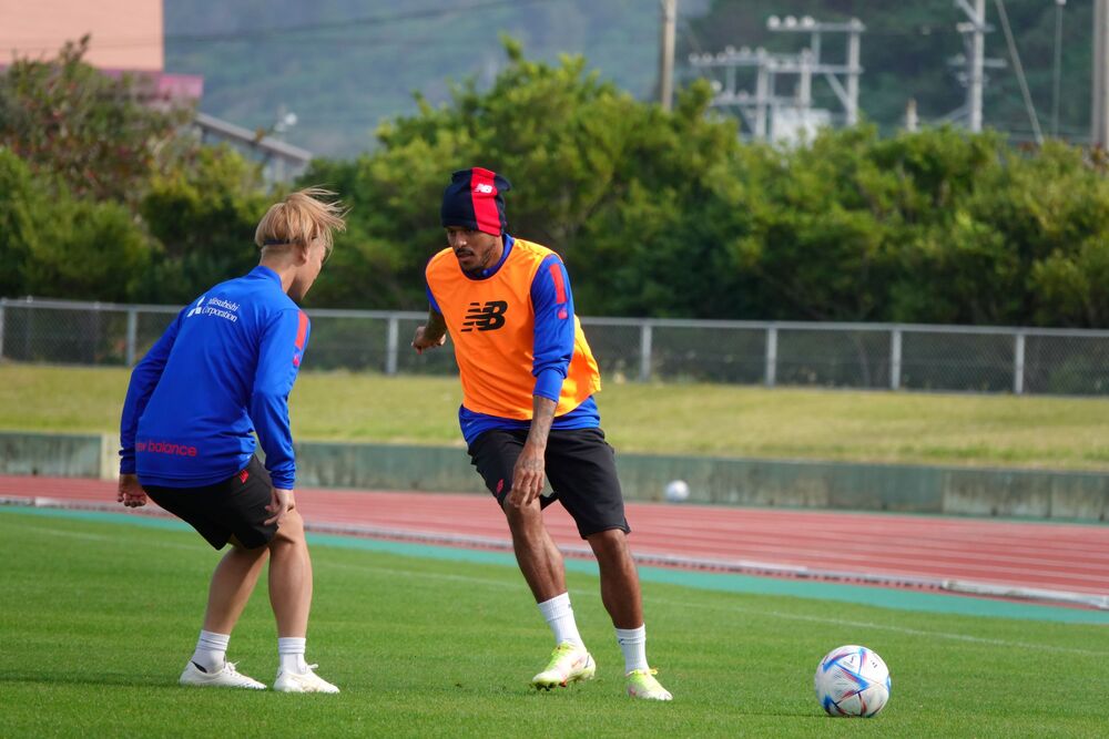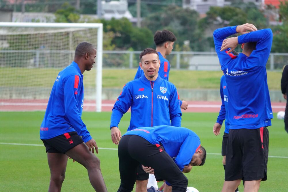 Seit gestern Abend sind Yuto NAGATOMO und Keigo HIGASHI in Okinawa eingetroffen und haben sich ab dem heutigen Training angeschlossen.