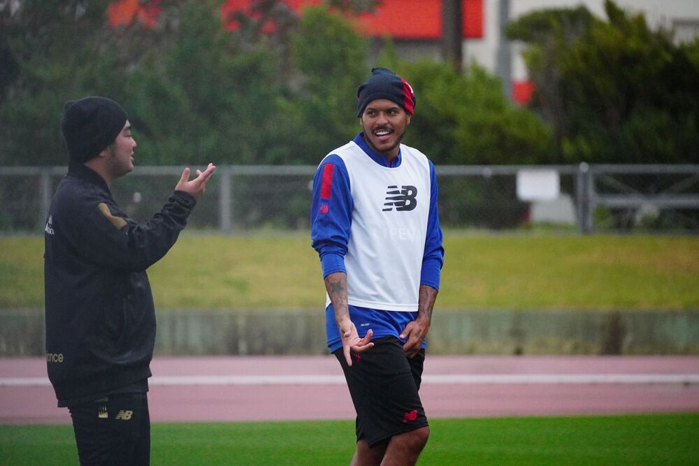 Seit einer Woche im Trainingslager in Okinawa haben sich die Neuzugänge gut ins Team eingefügt, und es gibt viele Momente, in denen sie während des Trainings mit einem Lächeln kommunizieren.