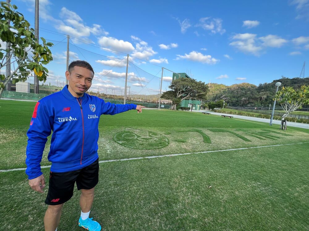Nach dem Training gingen die Spieler, darunter auch Nagatomo, vom Spielfeldrand weg und es wurde eine Botschaft mit dem gemähten Rasen gestaltet: „Bravo!!!“. Vielen Dank dafür.