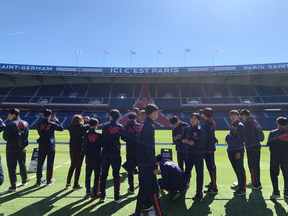 Wir machten Erinnerungsfotos am Louvre, Eiffelturm und Arc de Triomphe. Die Spieler waren fasziniert von den Bauwerken, die sie zum ersten Mal sahen.