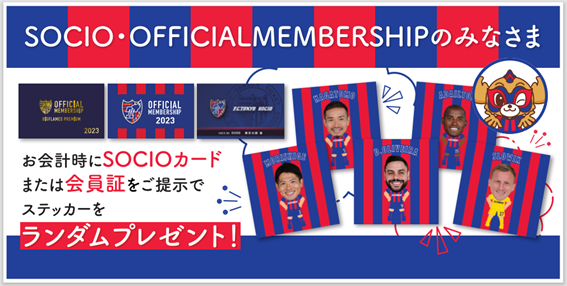 □An alle SOCIO- und OFFICIAL MEMBERSHIP-Mitglieder Ab dieser Saison erhalten Sie beim Einkauf im Fanartikel-Shop durch Vorlage der SOCIO-Karte oder des OFFICIAL MEMBERSHIP-Ausweises zufällig einen Spieleraufkleber als Geschenk!
