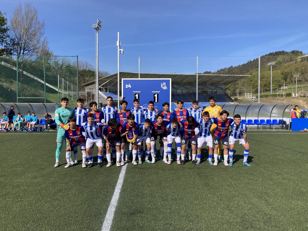 Das um 11:00 begonnene Spiel startete mit mehreren Änderungen in der Aufstellung im Vergleich zum Spiel gegen Celta. Wie im ersten Spiel gerieten wir von Beginn an unter Druck, verloren die Kontrolle und kassierten ein Gegentor nach einem Angriff über die Seite. Shun KOGA erzielte jedoch nach einem Dribbling mit dem rechten Fuß den Ausgleich. Trotz weiterer Bemühungen, die Führung zu erzielen, kassierten wir nach einer Flanke von der Seite erneut ein Gegentor. In der stimmungsvollen Atmosphäre des Heimstadions von Real Sociedad gab FC Tokyo U-18 bis zum Schluss nicht auf, und Divine OTANI, der eingewechselt wurde, erzielte kurz vor Spielende den Ausgleich. Das Spiel endete unentschieden. Im anschließenden Elfmeterschießen parierte der Torwart Rentoh KITAGAWA zweimal und verschaffte der Mannschaft eine Siegchance, doch der Sieg konnte erst im Elfmeterschießen nach dem 11. Schützen entschieden werden. Der gegnerische 11. Schütze, ebenfalls Torwart, vergab, während Rentoh KITAGAWA, der 11. Schütze von FC Tokyo U-18, traf und somit den Sieg sicherte.