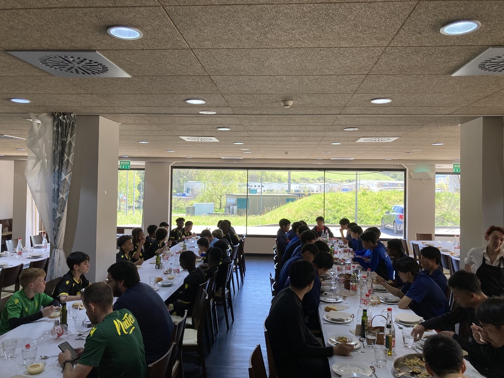 Der Austragungsort des ab heute beginnenden Turniers ist „Zubieta“, die Trainingsanlage von Real Sociedad für die erste Mannschaft und die Akademie, die etwa 10 Minuten mit dem Bus von der Unterkunft entfernt in den Vororten von San Sebastián liegt. Zubieta, das sich am Hang eines Berges befindet, verfügt über sechs Spielfelder (weitere zwei werden in Zukunft hinzugefügt), ein angeschlossenes Café und Zuschauertribünen. Das gleiche Turnier für die U-13 findet ebenfalls auf dieser Anlage statt, und mit Musik und einem Hallensprecher herrscht dort eine regelrechte Feststimmung.