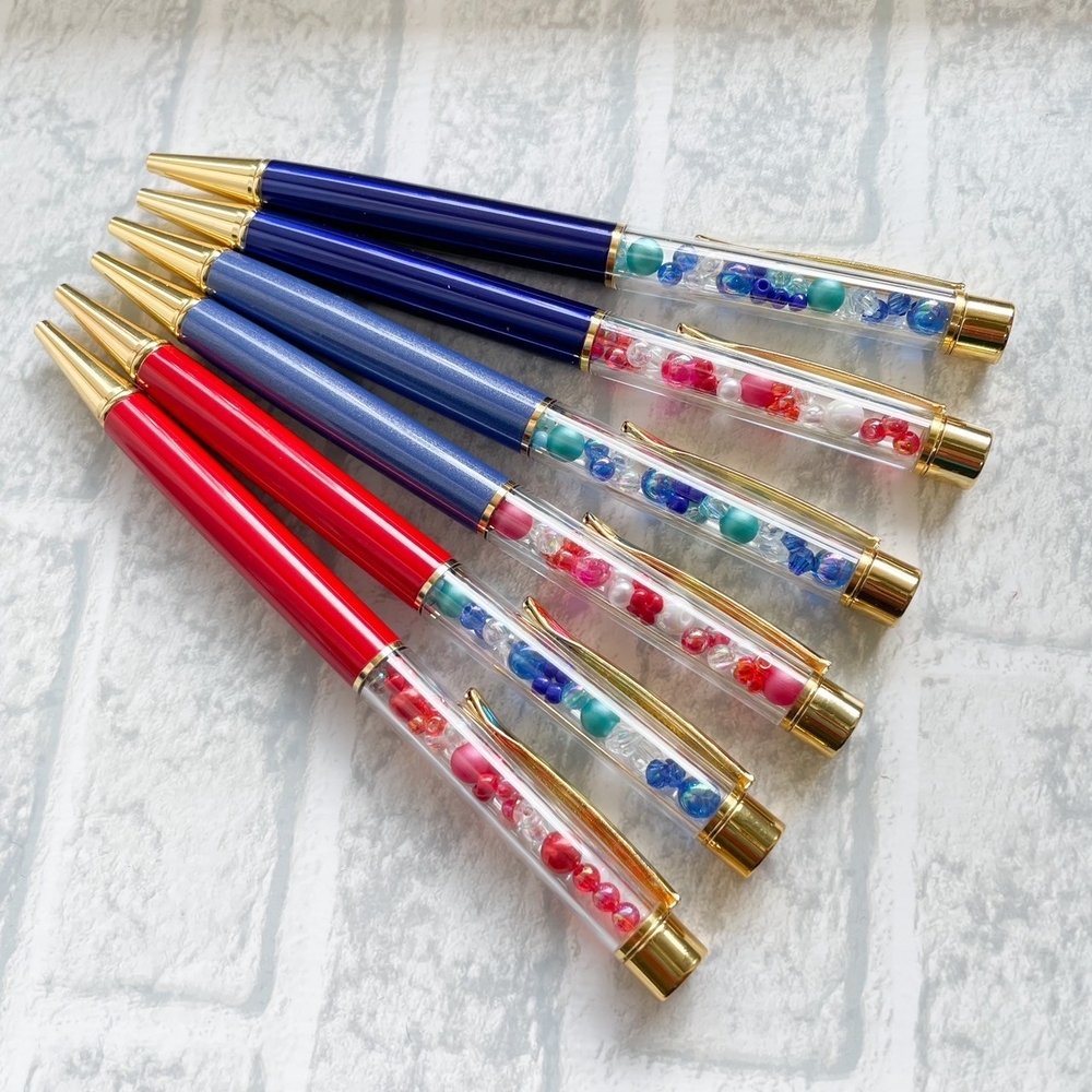 Wählen Sie Ihre bevorzugte Art & Farbe der Kugelschreiber-Teile aus und fügen Sie verschiedenfarbige Perlen hinzu, um Ihren eigenen originalen Kugelschreiber zu gestalten. Wir haben viele verschiedene Farben sowohl bei den Kugelschreiber-Teilen als auch bei den Perlen, also genießen Sie es, Ihren ganz persönlichen Kugelschreiber zu kreieren!