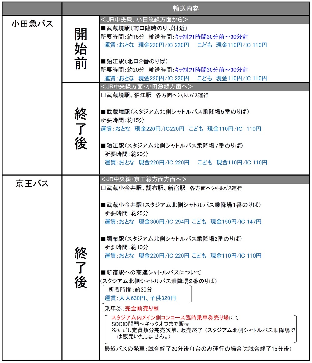 Am Sa., 29.04.2023, im Rahmen der 10. Runde der Meiji Yasuda J1 League gegen Albirex Niigata (Anpfiff 15:00 / Ajinomoto Stadium) informieren wir über den eingesetzten Sonderverkehr (Schienenverkehr), Shuttlebusse und Linienbusse.