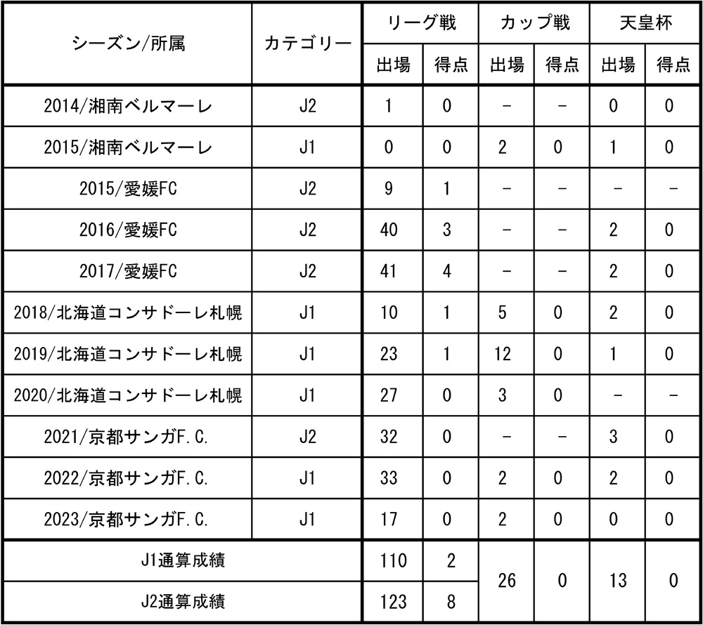 ※ Die Aufzeichnungen beziehen sich ausschließlich auf die Zeit bei Vereinen der J-League.