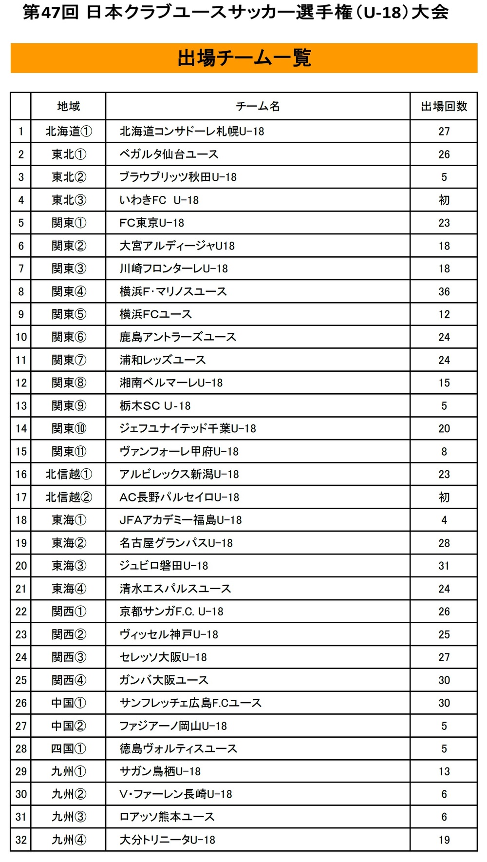 ※ Regionen, in denen die Anzahl der registrierten Mitgliedsvereine weniger als 2 beträgt, spielen ein Playoff gegen den 12. Vertreter der Kanto-Region.