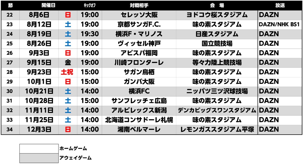 Wir möchten Sie darüber informieren, dass der Spielplan für die zweite Hälfte der Meiji Yasuda J1 League 2023 wie unten festgelegt wurde.