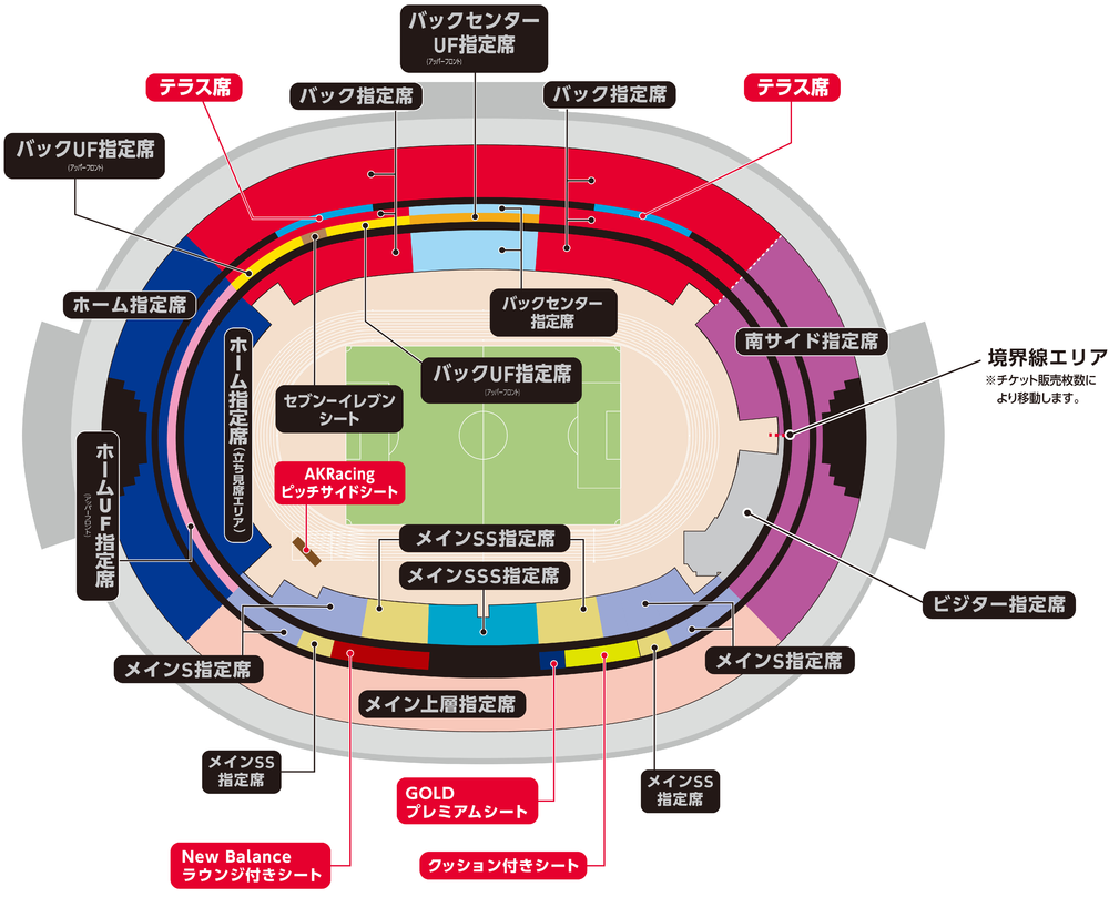 ※Die Bereiche, in denen Sie mit Trikots und Fanartikeln des Gastteams zuschauen können, sind wie folgt.