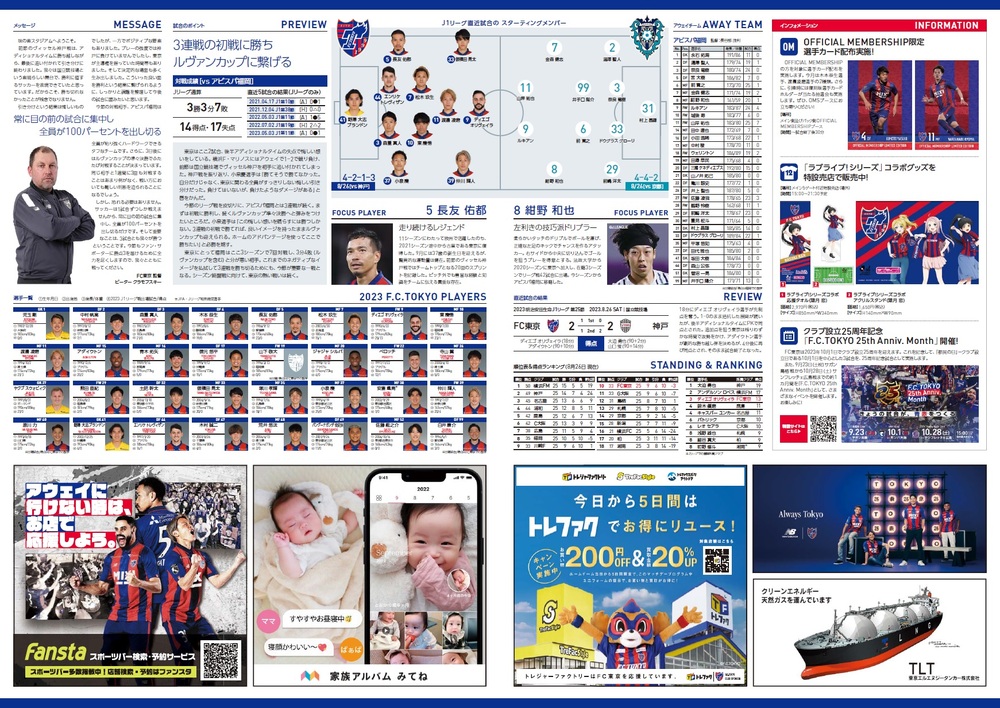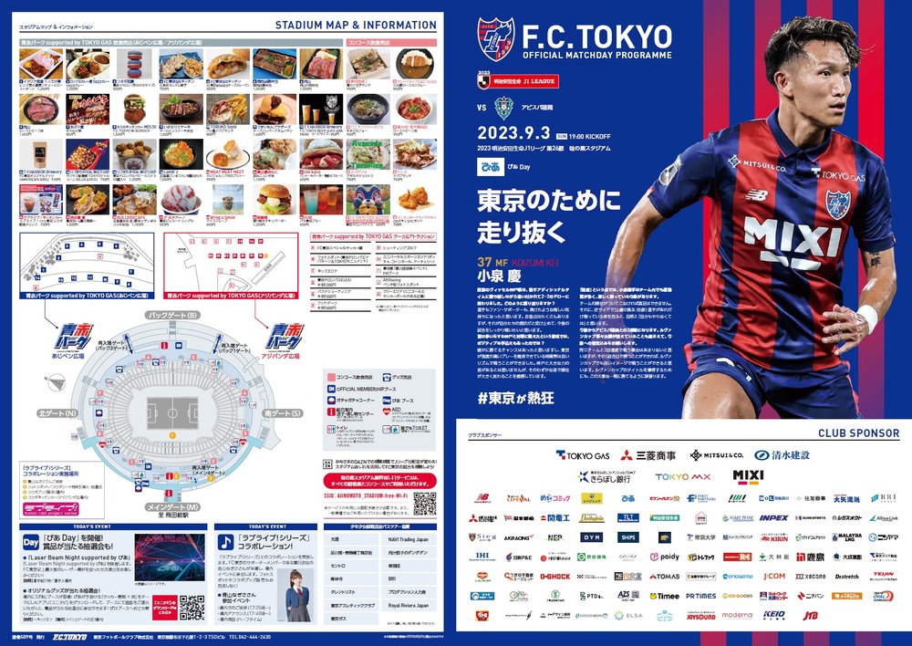 So., 03.09.2023 Meiji Yasuda J1 League, 26. Spieltag vs Avispa Fukuoka (Anstoß 19:00 / Ajinomoto Stadium) Offizielles Matchday-Programm, Informationen wie folgt.
