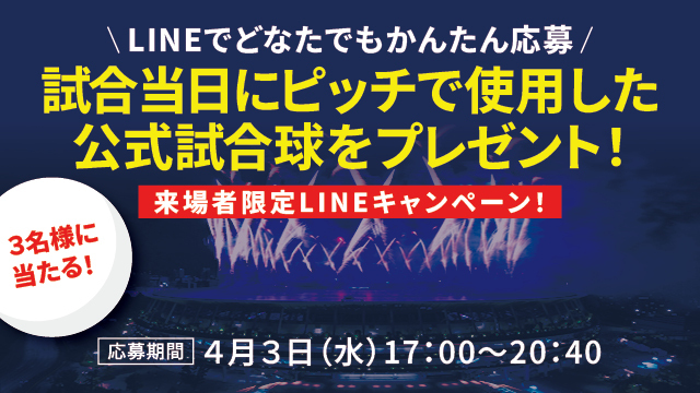 ・Am Mi., 03.04. können alle Besucher, die das Spiel FC Tokyo vs Urawa Reds besuchen und das offizielle LINE-Konto als Freund registriert haben, teilnehmen.