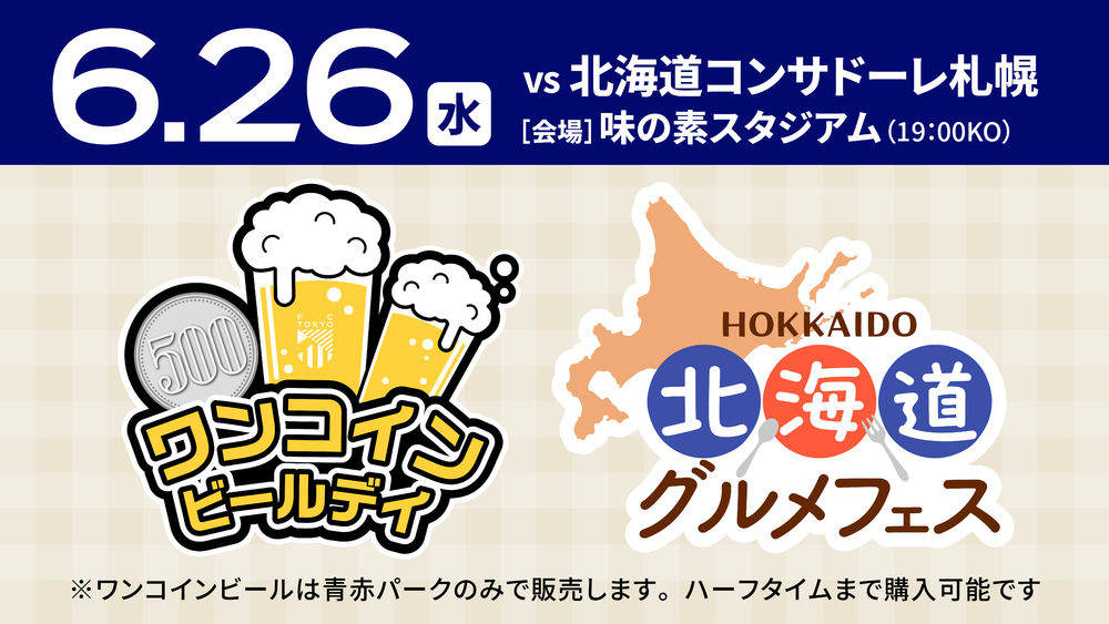 Mi., 26.06. - Informationen zu Speisen und Getränken im AO-AKA PARK (außerhalb) beim Spiel gegen Hokkaido Consadole Sapporo, im AO-AKA PARK vor Ort sowie an den Verkaufsständen im Stadioninnenraum.