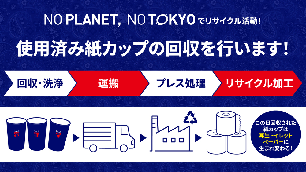 Die gesammelten Pappbecher werden zu recyceltem Toilettenpapier verarbeitet und kehren so zum Ajinomoto Stadium zurück.