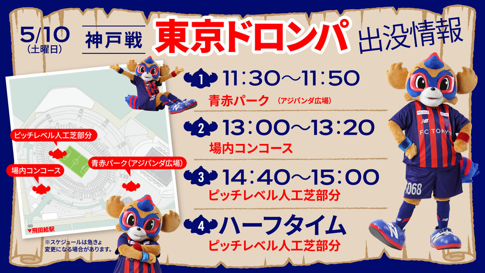 Sa., 10.05.2025 Meiji Yasuda J1 League, 16. Spieltag vs Vissel Kobe (Anpfiff 15:00/Ajinomoto Stadium) erscheint TOKYO DOROMPA wie folgt.