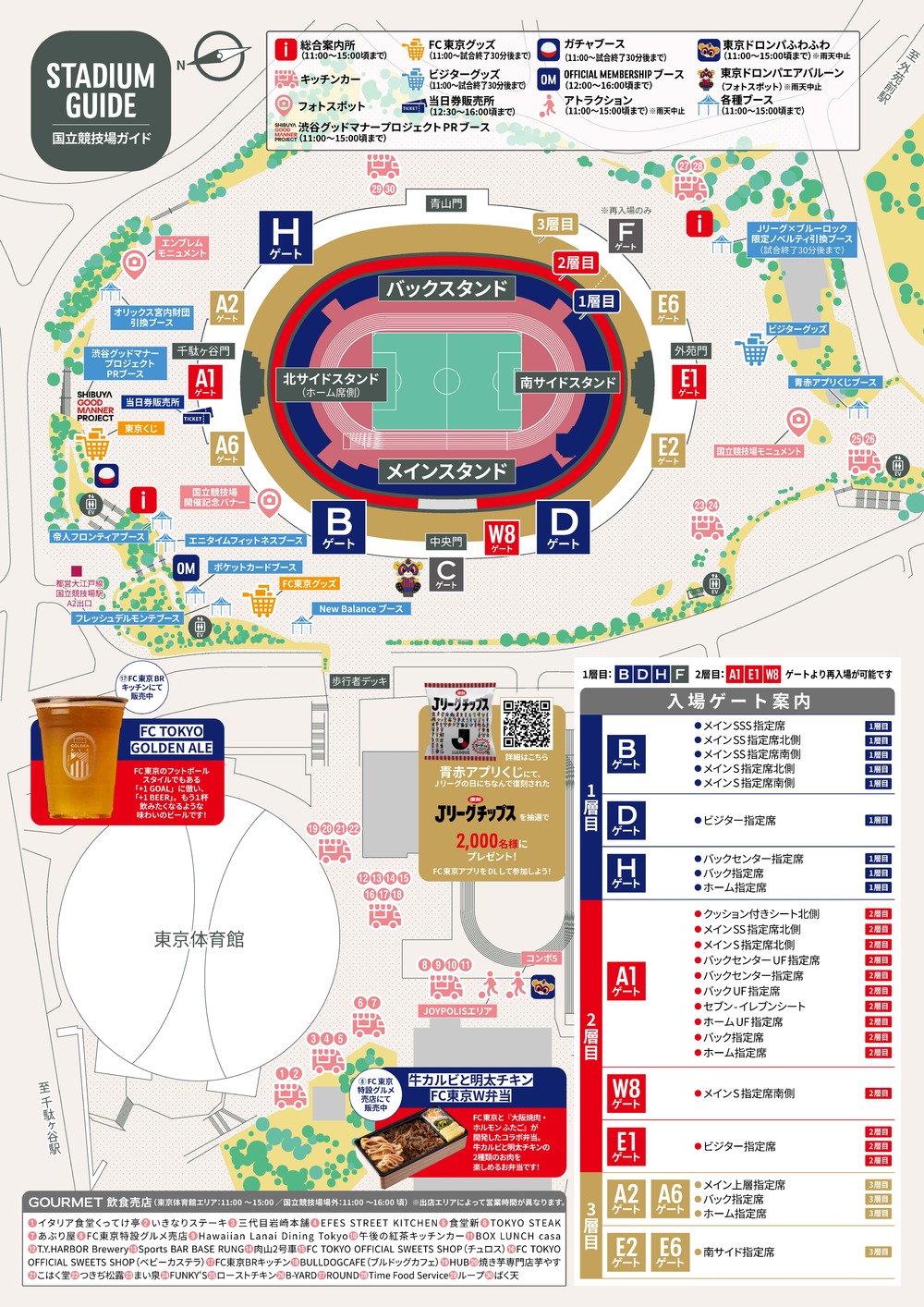 ※Die am Veranstaltungstag verteilte Stadionkarte enthält den Eintrag „Niku Yama Wagen Nr. 1“, jedoch wurde der Stand aus verschiedenen Gründen abgesagt. Anstelle des „Niku Yama Wagen Nr. 1“ wird „Sports BAR BASE RUNG“ vertreten sein, ist jedoch auf der verteilten Karte nicht vermerkt. Wir bitten um Ihr Verständnis.