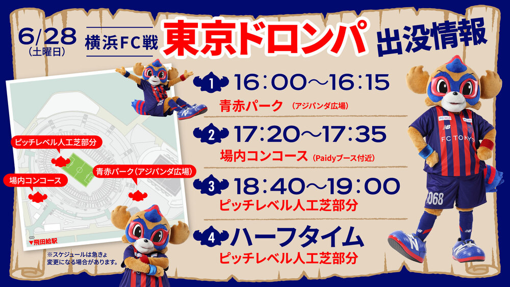 Sa., 28.06.2025 Meiji Yasuda J1 League 22. Spieltag vs Yokohama FC (Anpfiff 19:00/Ajinomoto Stadium) erscheint TOKYO DOROMPA wie folgt.