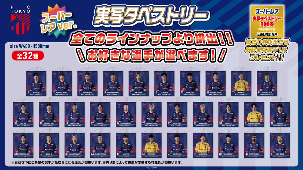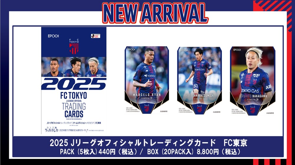 Neben Sommerartikeln wie T-Shirts und Happi-Jacken verkaufen wir auch die alljährlichen offiziellen FC Tokyo 2025 J-League Trading Cards.