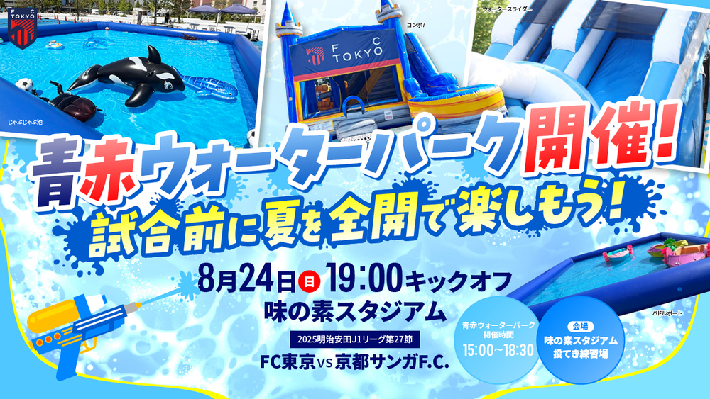 So., 24.08.2025 Meiji Yasuda J1 League 27. Spieltag vs Kyoto Sanga F.C. (Anpfiff 19:00/Ajinomoto Stadium), veranstalten wir den „Blau-Rot Wasserpark“!