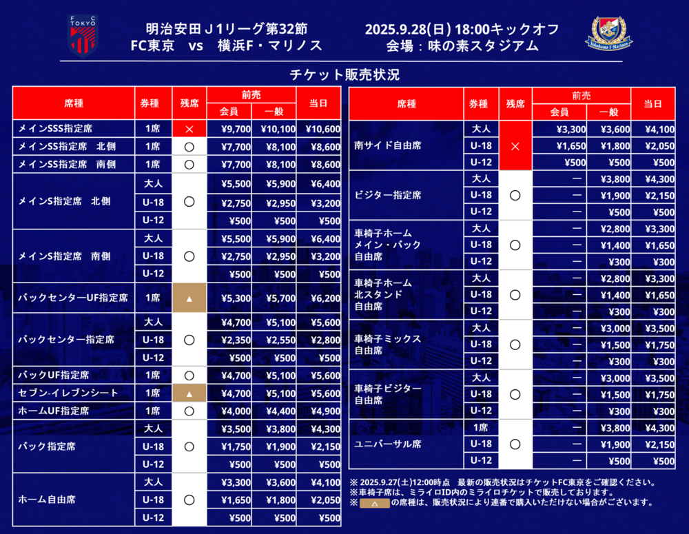 Zum Verkauf von Tageskarten für das Spiel der Meiji Yasuda J1 League 2025, 32. Spieltag, FC Tokyo vs Yokohama F.Marinos (Anpfiff 18:00 / Ajinomoto Stadium), informieren wir Sie wie folgt.