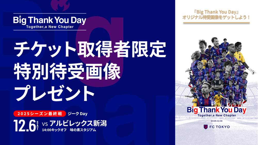 ※Ausgenommen sind Käufer von Gästebereich-Tickets; die Aktion richtet sich an diejenigen, die FC Tokyo als Favoriten registriert haben. Personen ohne Favoritenregistrierung erhalten keine Zusendung