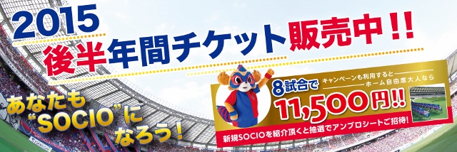 Ab heute beginnt der Anmeldezeitraum für das "2015 Zweite Halbjahres-Ticket", das für 7 Heimspiele der Liga ab dem Spiel gegen Vegalta Sendai am Mi., 29.07. gilt.