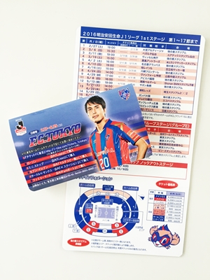 ◇ Der „Pocket Schedule“ ist ein kompakter, faltbarer Spielplan (zusammengefaltet in Visitenkartengröße!) mit den Spielterminen und Sitzplatzplänen der FC Tokyo Erstmannschaft!